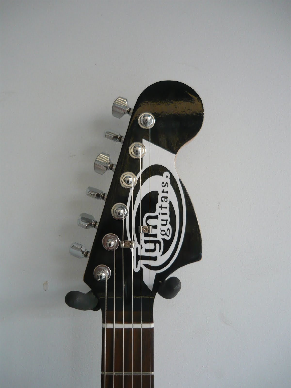 The extra scale length at 25.5" gave clearer tone and made the P-90 react very nicely to feedback. I went for the big "CBS" style headstock as I think they look tougher and have better tone/sustain (yeah, I know !!) with a hard maple neck and rosewood fretboard.