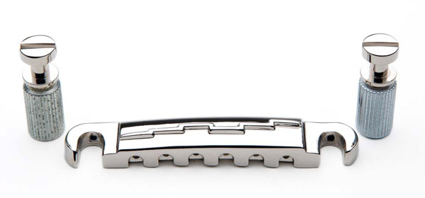 This classic piece of hardware designed by Ted McCarty is still my all time favorite bridge if it's done right. The wraparound bridge/tailpiece from the '54/55 Gibson Les Paul offers a simplicity and functionality that is hard to match. It provides a firm seating for the strings, allowing the player to adjust intonation and string height as needed, and yielding an incredible union between the strings and body, resulting in excellent tone and sustain.