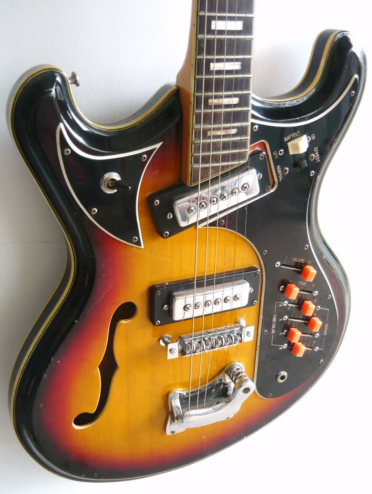 The May Queen just stood out as a reject from the Rickenbacker factory that had been left in the sun to melt. This was first of the "set" that I got as they are probably the most common (out of these 3 anyway). These are semi solid construction with 1 F hole and an "organic" body shape that was very different from anything mainstream available at the time. These have been re-issued in recent years by Kawai and the re-issues are great, especially the top of the line version