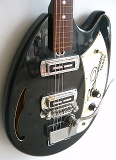 All three guitars have vibratos based on the Mosrite vibrato and work exceptionally well. I personally think it's the best vibrato design out there. These guitars were well made and NOT cheap pawn shop specimens as Teisco (and other great Japanese manufacturers) are lumped in with. Teisco made "cheap" entry level and student guitars, but these aren't amongst them. These, like the Spectrum series are every bit as good as any of the great Japanese factories that have produced guitars over the last 40 years. All were offered in bass versions and I assume these are even rarer. I have only ever come across 4 other Fire Bird guitars (all sunburst) and 1 bass. I have seen less than 10 Vampers in this version and of course have seen a few, original May Queens as they were the best selling of this series. How much are they worth ? Whatever a collector is prepared to pay, but mine aren't for sale, at least not for now.