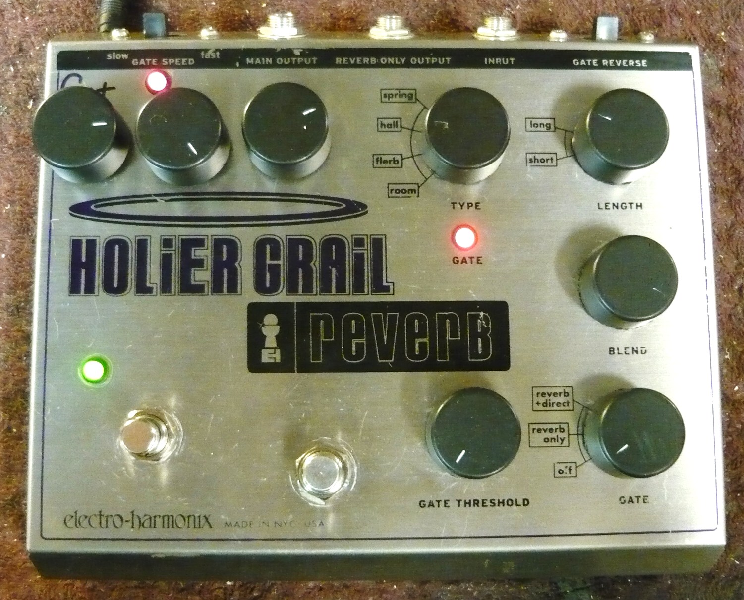 Well, this started off as a matter of interest and turned into the ultimate surf pedal. I had this old EH Holier Grail that had been sitting around the workshop broken, with boxes of other pedals (and amps/guitars etc) for a few years. A friend of mine bought one exactly the same off EBay and when it turned up, it had EXACTLY the same problem. The voltage regulator was burned out along with a few resistors in the same circuit. These are all easy parts to get and once his was repaired, so was this one.