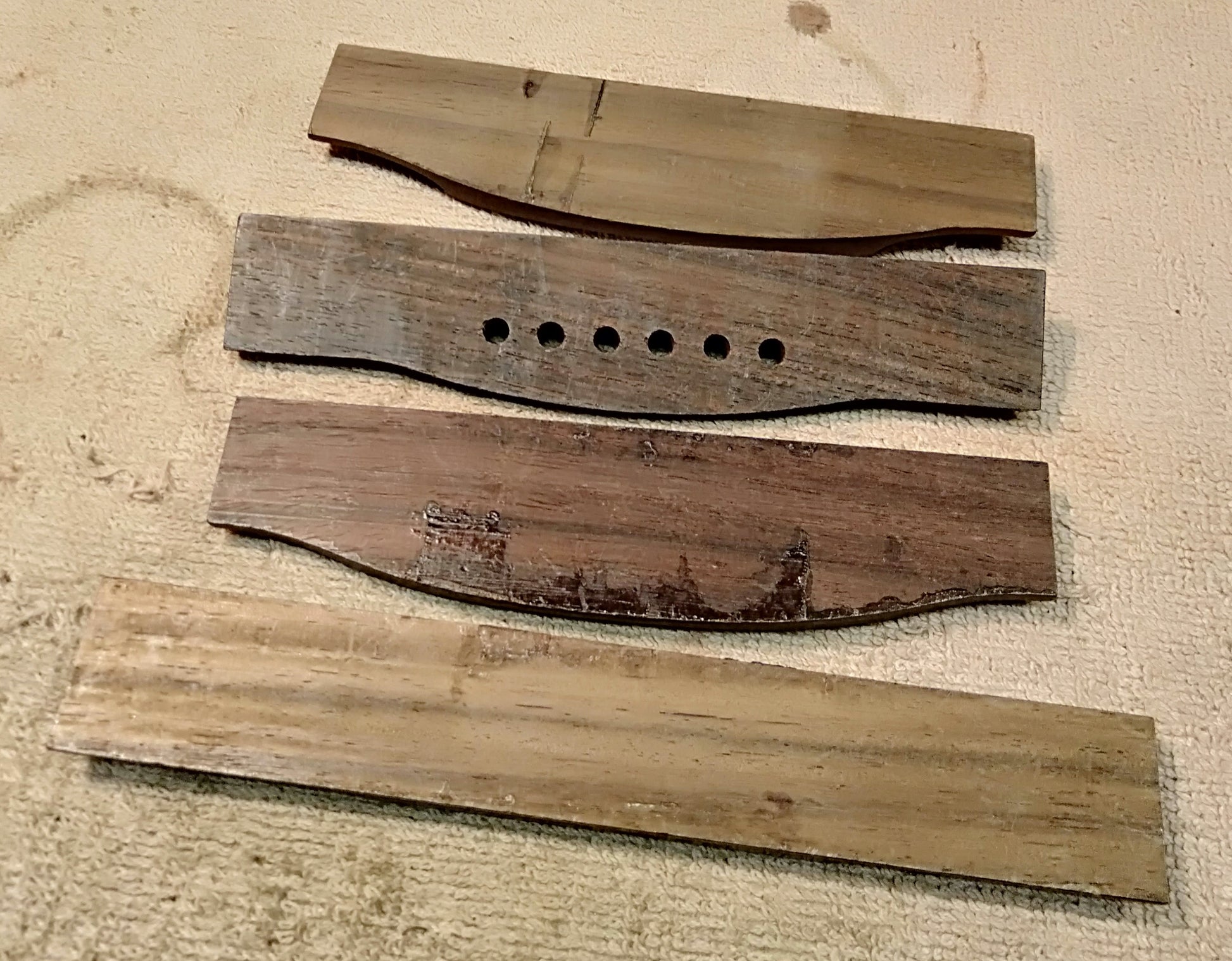 4 acoustic guitar bridges. 3 NOS. Unknown brands. Price is for all 4.