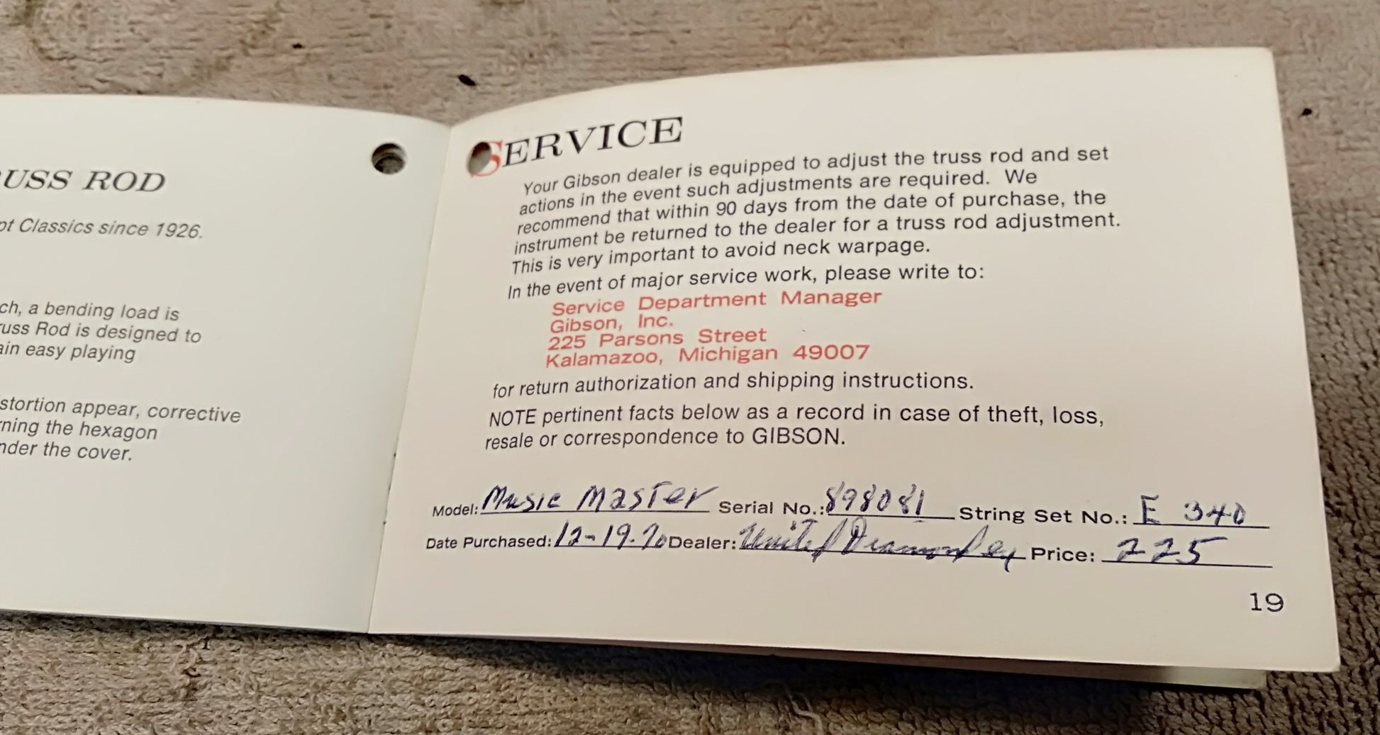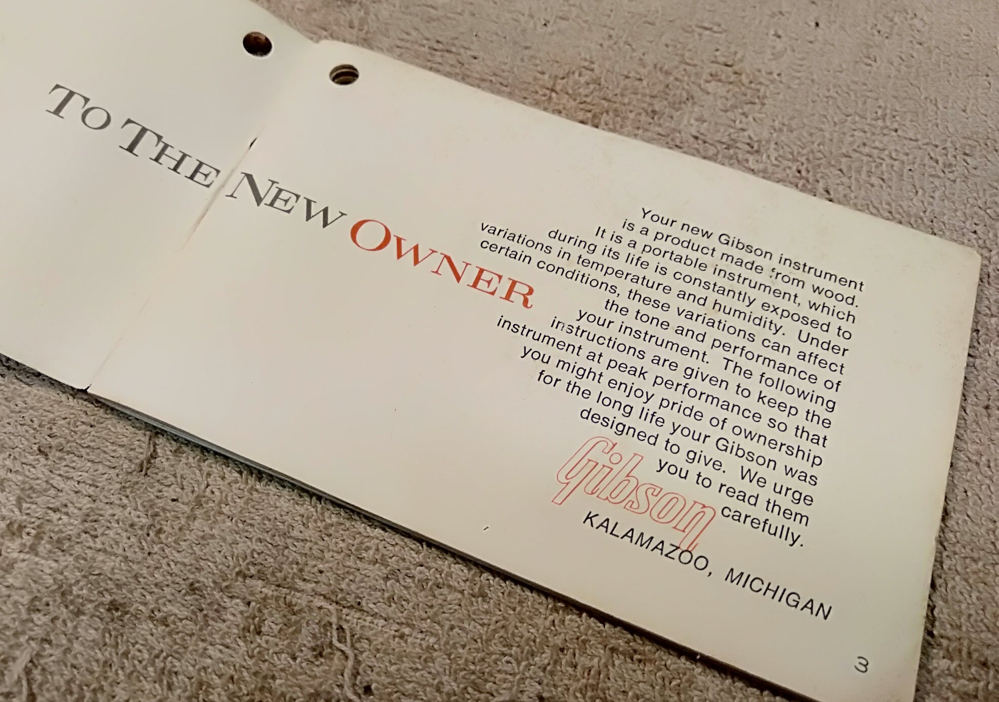 Vintage Gibson handbook/hangtag. Good condition. Pages and print very nice. 20 pages. Originally for a 1970 Music Master.