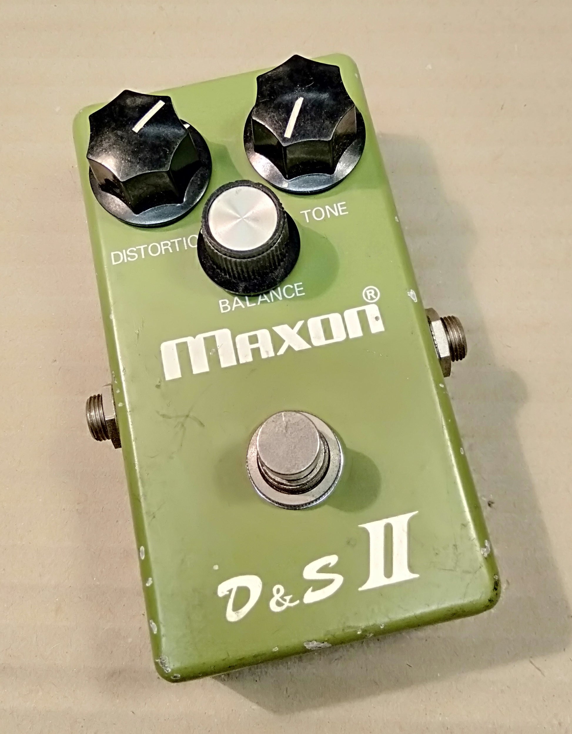 The Maxon D&S II is a distortion and sustain pedal inspired by the vintage MXR Distortion+ through its use of germanium diodes. Along with Distortion and Tone controls, it features a Balance control between the wet and dry sounds. This has been discontinued from Maxon.