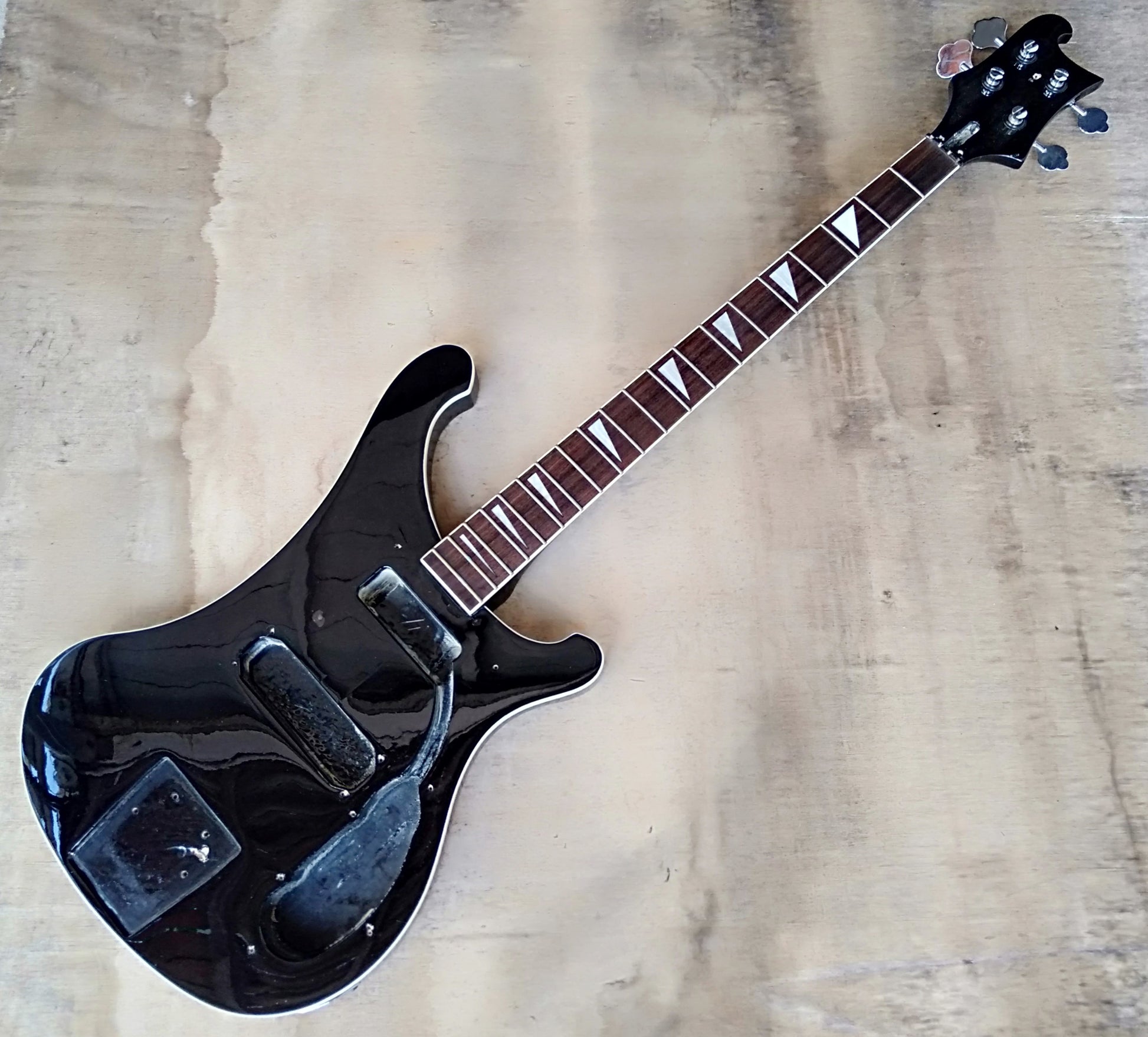 R1C bass body and set/through neck. Great condition with some very slight marks and scratches. Solid timber body. Set neck with rosewood fretboard with triangle inlays. Probably Chinese or Korean. With good tuners. A great project to fit generic R1C hardware (some coming if I can find it?) or anything you like.