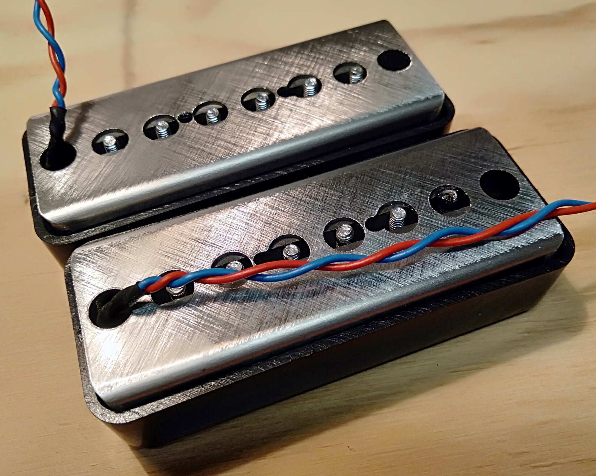 These Tym FMF T-90 pickups are hand made by me here in Brisbane and are a P-90 size single coil inspired by vintage Japanese pickups including the original Aria 1702/Univox Hi-Flier phase II design using ceramic bar magnets and pole pieces along with the unique feature of a "claw" inside the cover as used on many vintage Japanese pickups. I make these for my own TMI guitars.