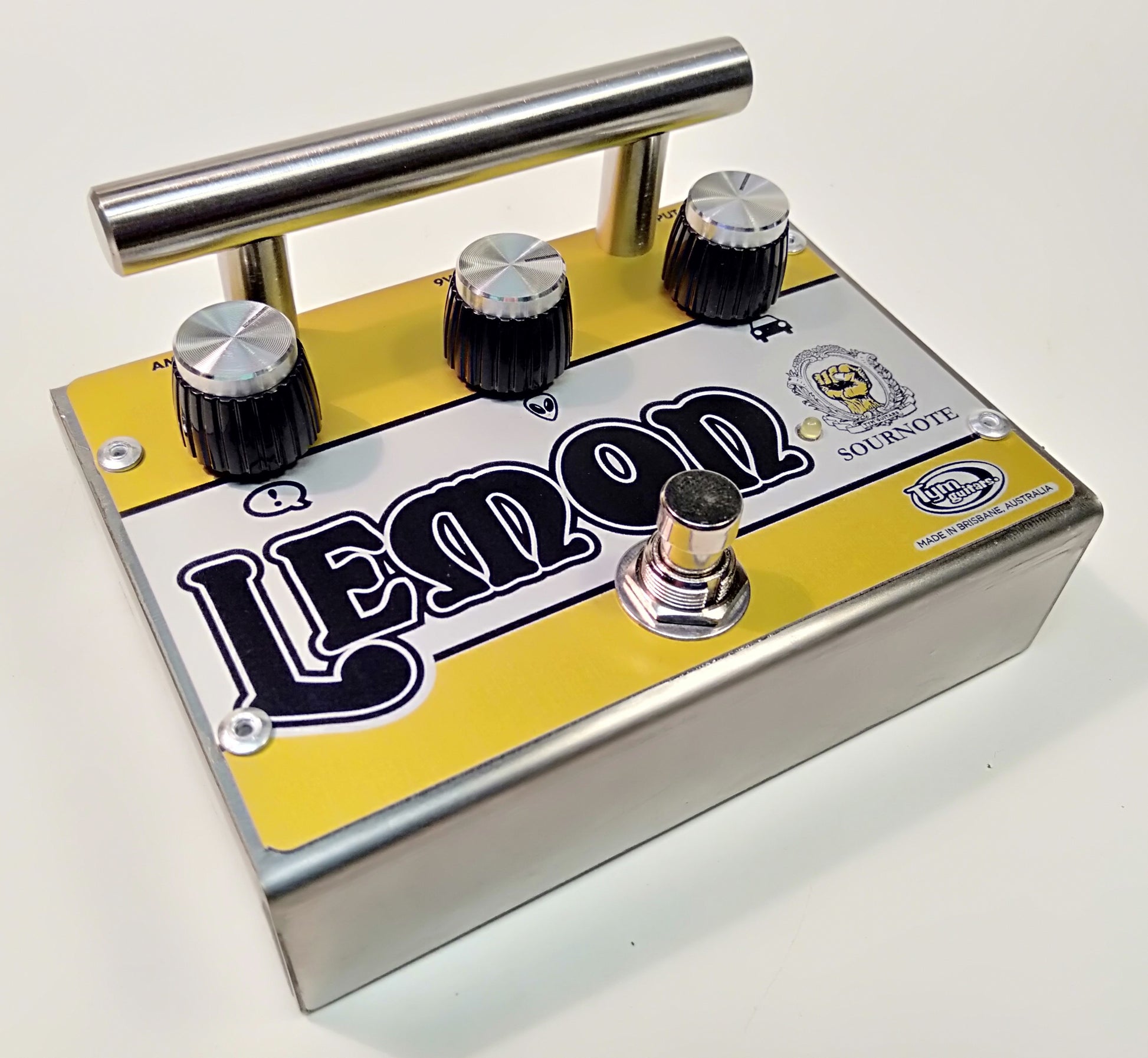 The pedal has three simple controls marked with "pics only" indicators based on the Lemon amp artwork with VOL / FAC / DRIVE. This is of course a homage to the early pics only Orange OR amps from the early 70's.