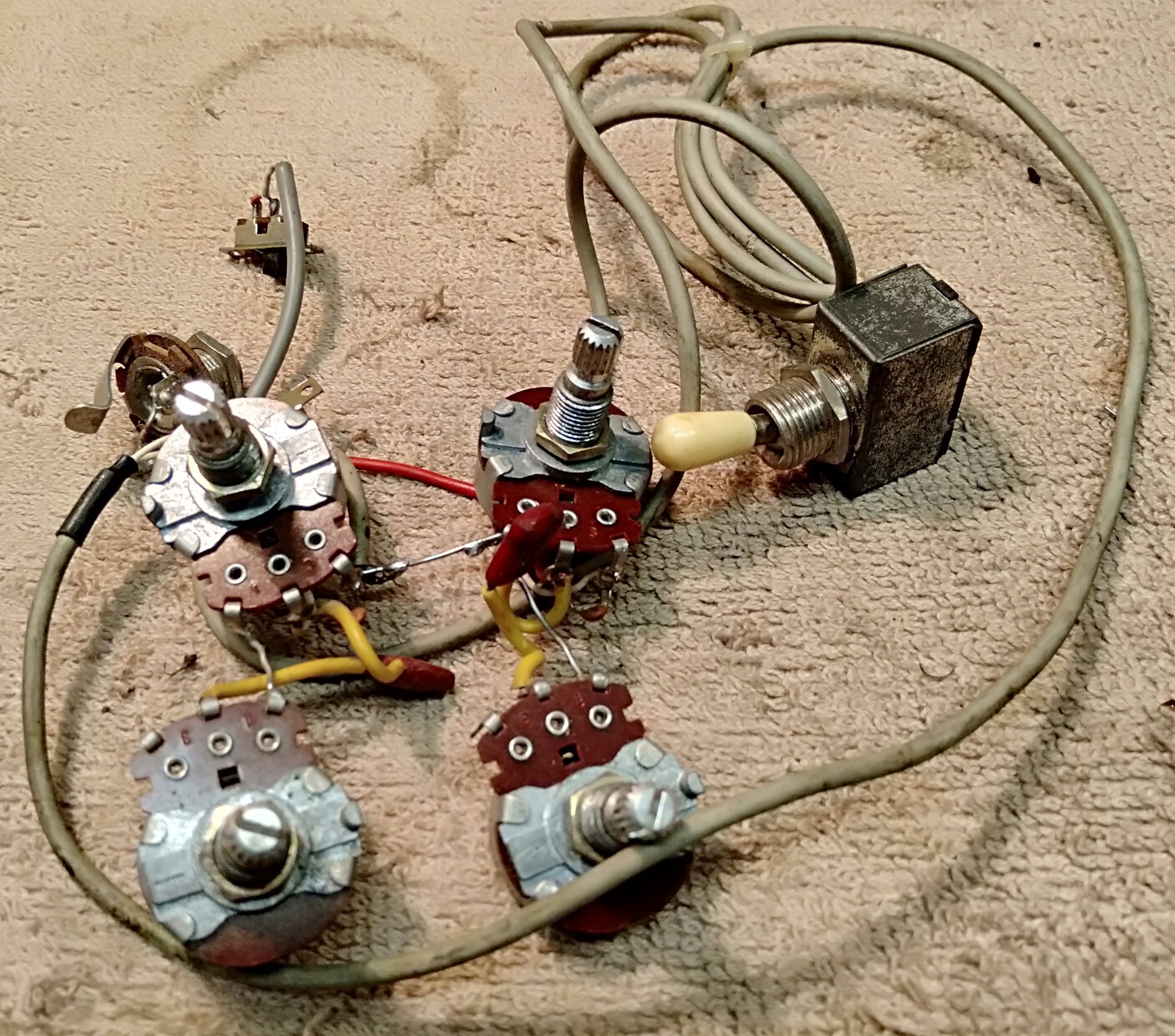 Vintage Japanese pots from early/mid 60's unknown guitar with pots, 3-way switch and 2 mini sliders.